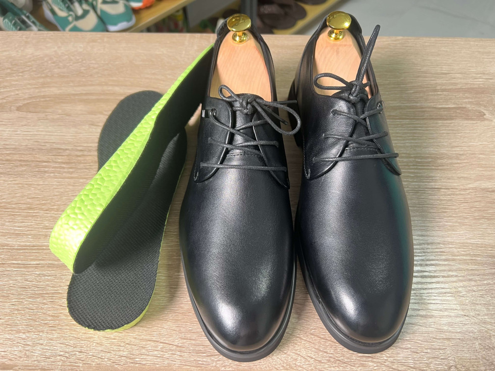 ម៉ូតបែបការិយាល័យ ឬសម្រាប់ពាក់ក្នុងកម្មវិធីផ្លូវការ ប្រភេទស្បែកគោព្រីមៀមកែងកម្ពស់3cmនិងមានប៉ុងកល់បន្ថែមកម្ពស់2.5cm ទៀតសម្រាប់បងប្អូនត្រូវការកម្ពស់បន្ថែមឬមានបញ្ហាពាក់ប៊ូដើរច្រើន ឈរយូរឈឺកែងជើង។